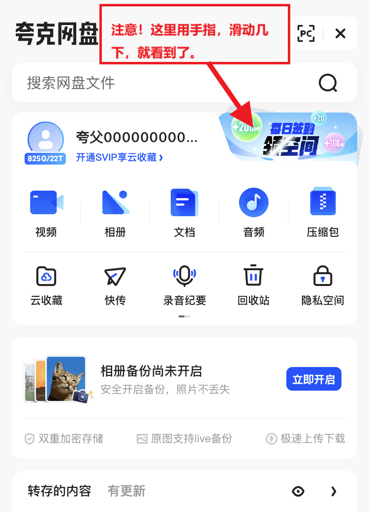 - 之后每天用手机夸克APP签到,每天能领取翻倍的空间